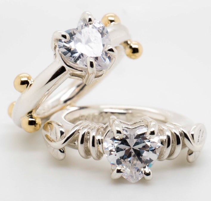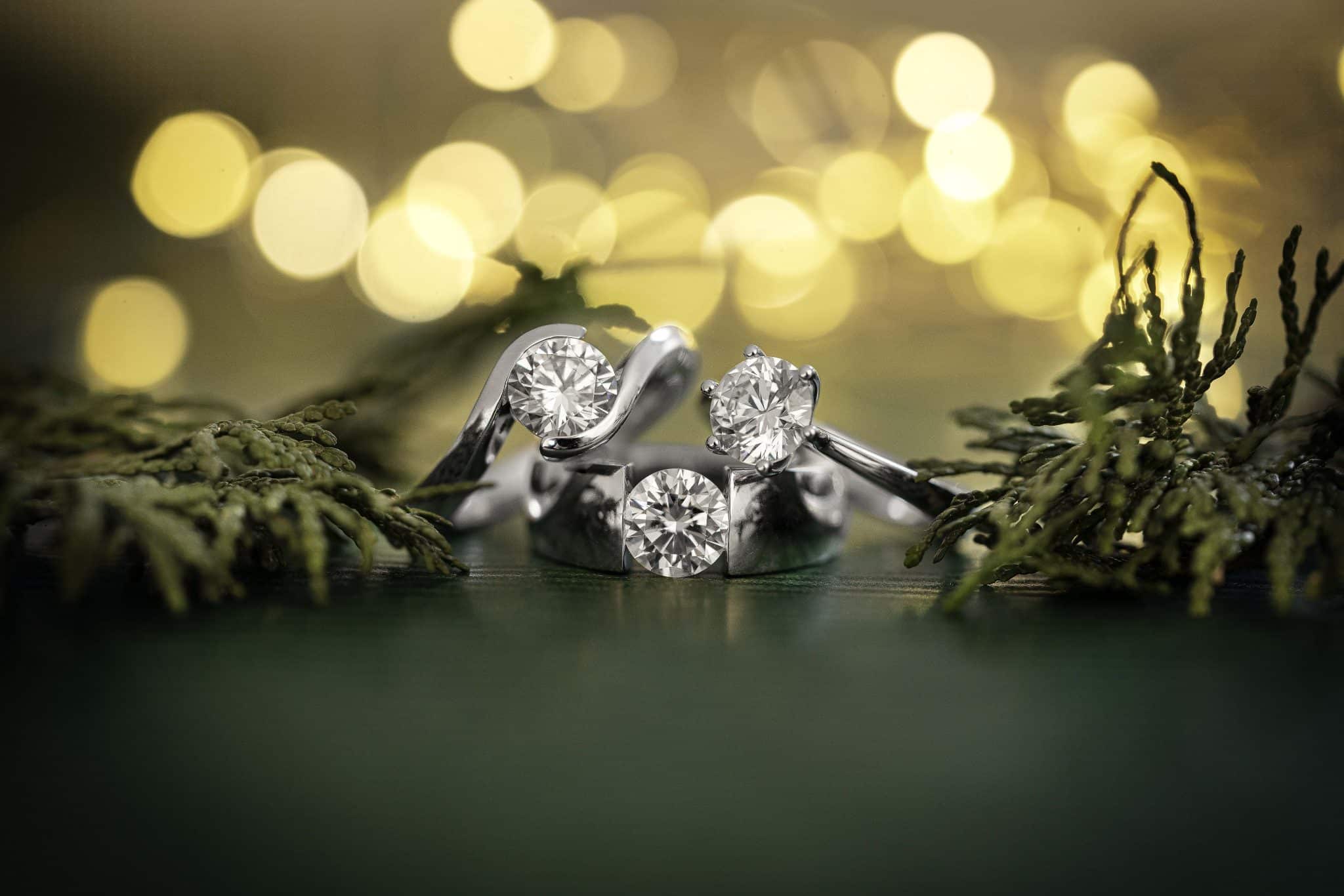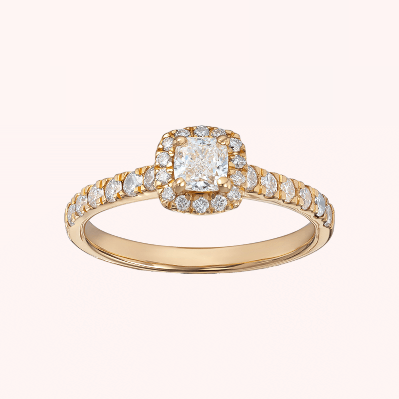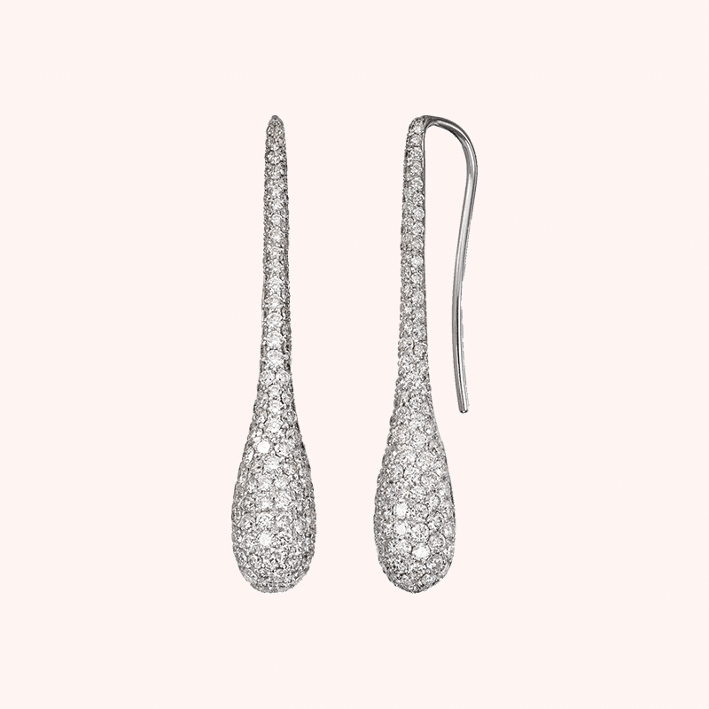 Hvitt gull ring med dråpeslipt diamant og brillianter