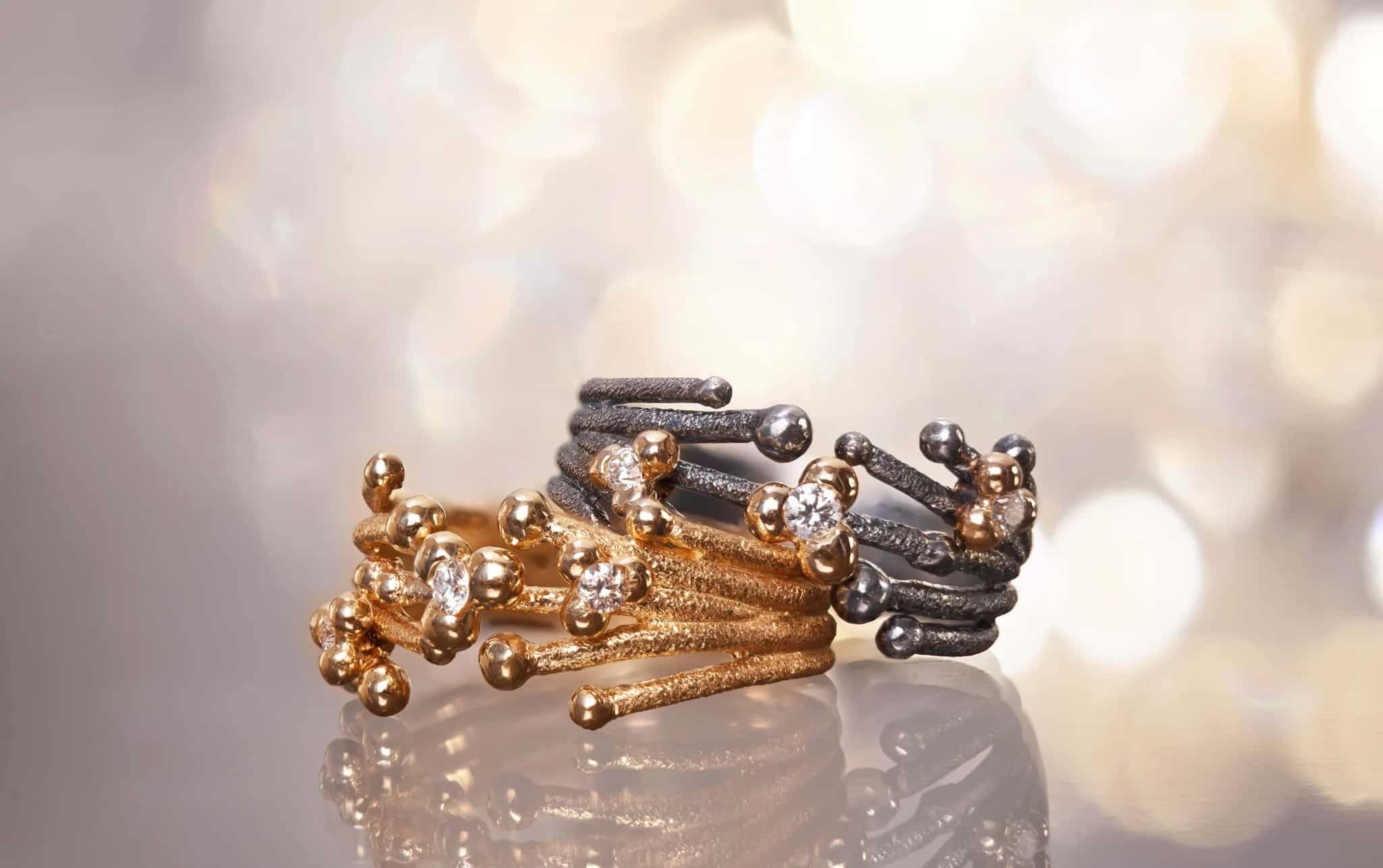 Rosè gull ring “one of a kind” med ametyst og turmalin