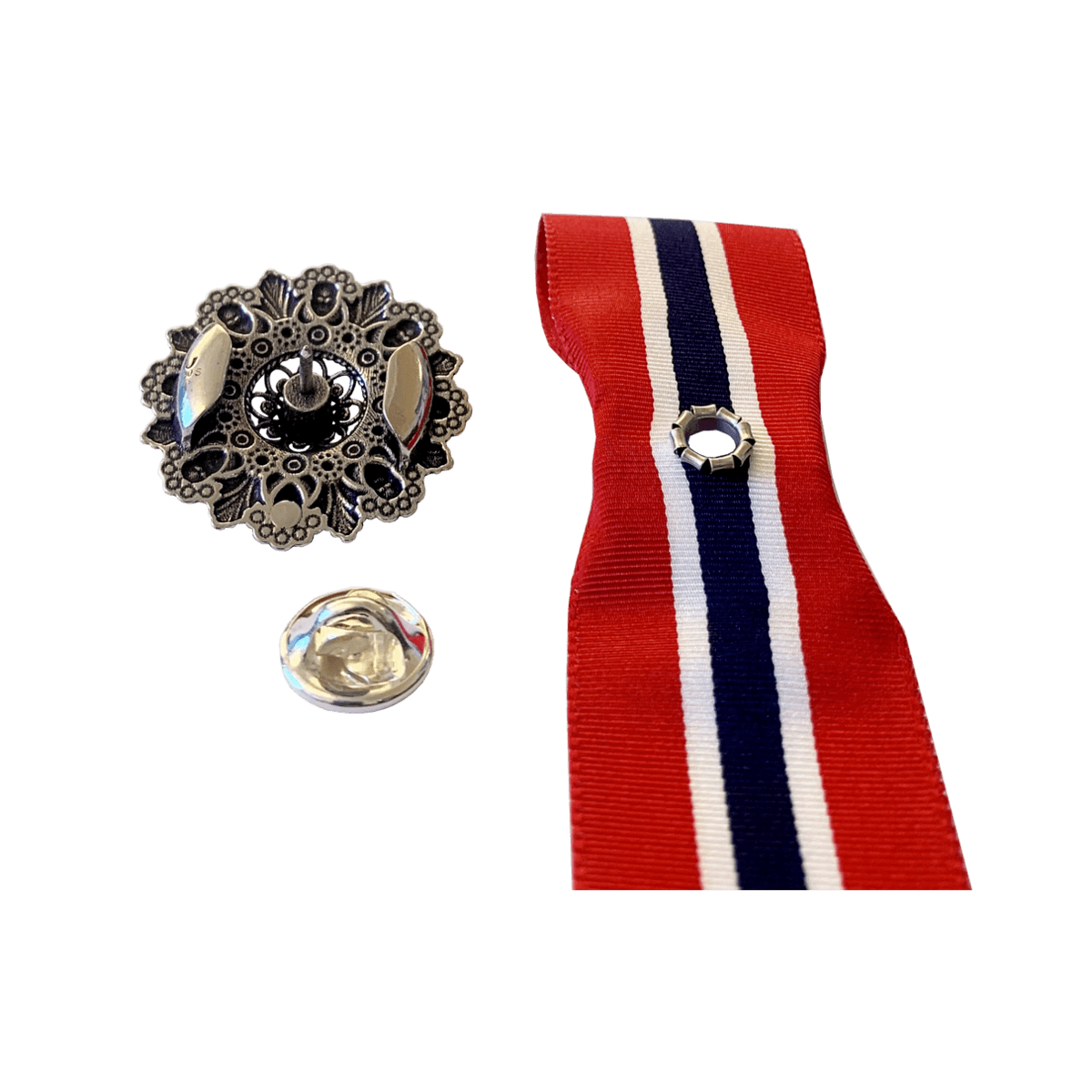 Vår nye 17. maisløyfe og sølje i same produkt. Sløyfebandet kan takast av, og ein kan bruke berre sølja. Like fint til kvardag som til fest.