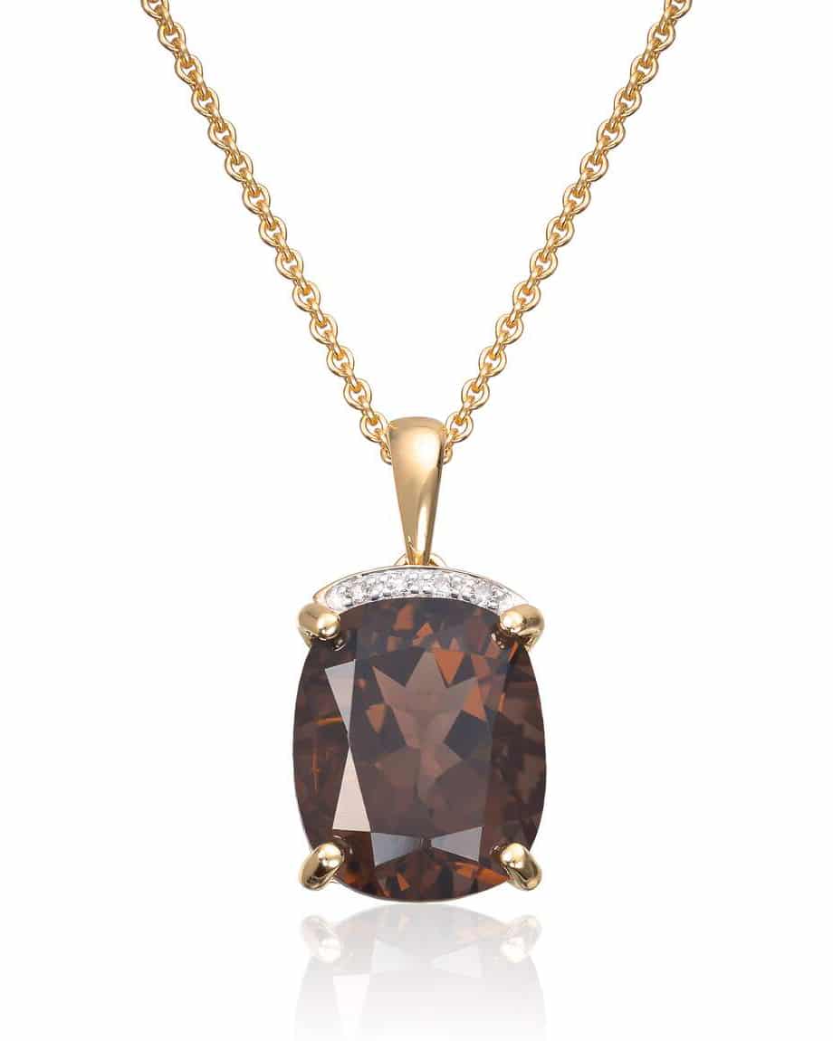 Anheng 14K gult gull med Røkkvarts og 0,02ct diamanter