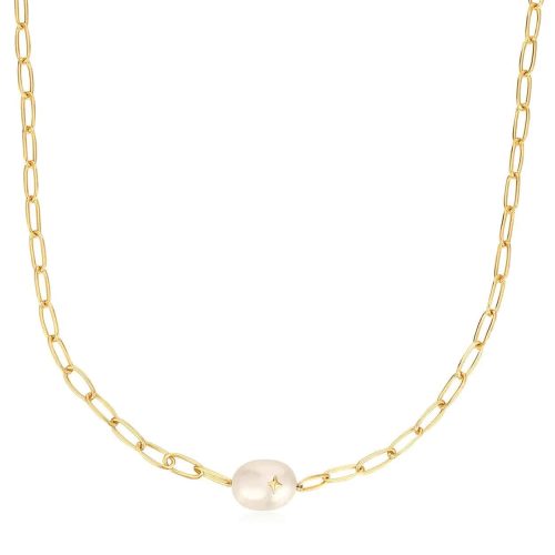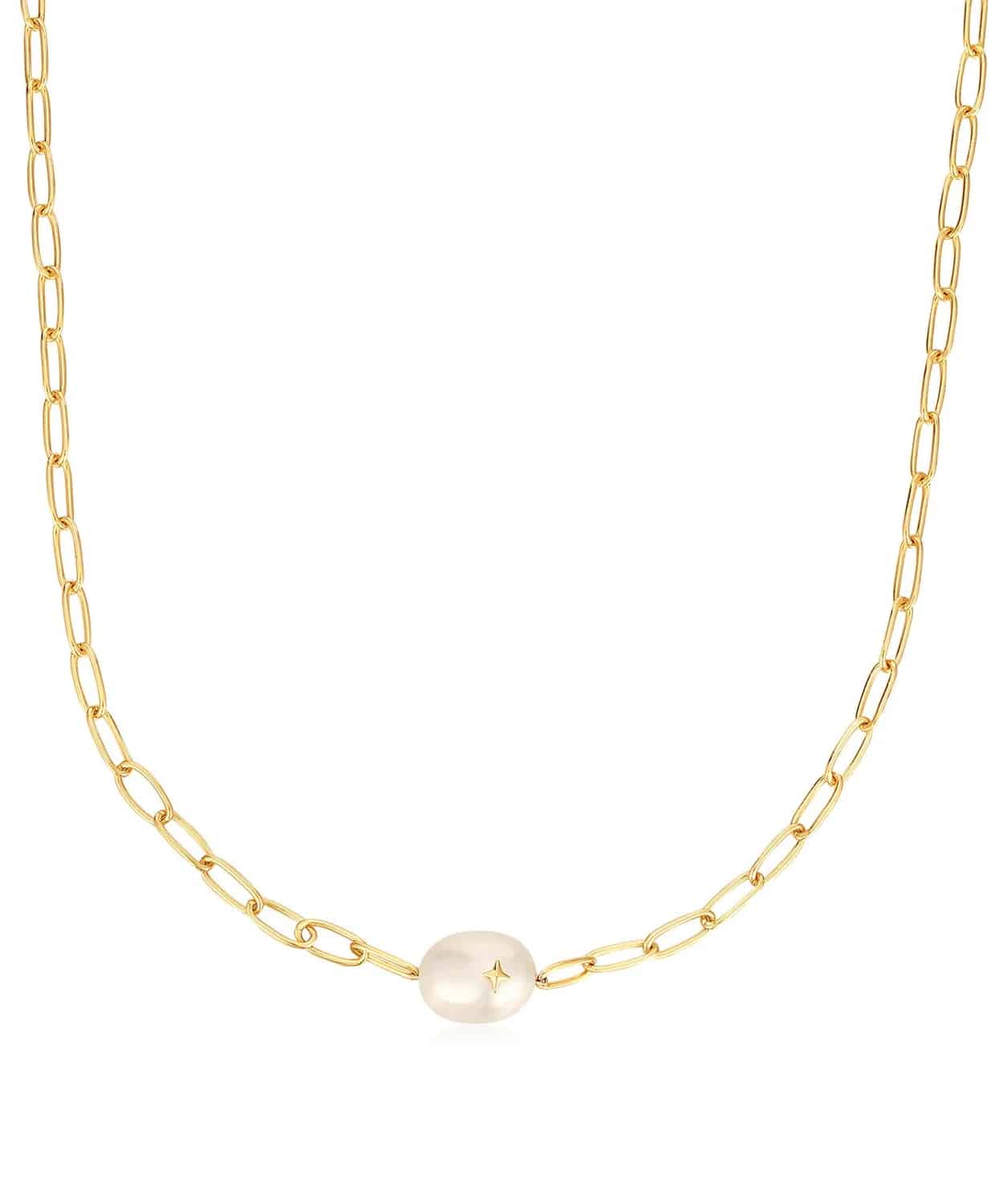 Ania Haie Gold Pearl Sparkle Chunky Chain Necklace