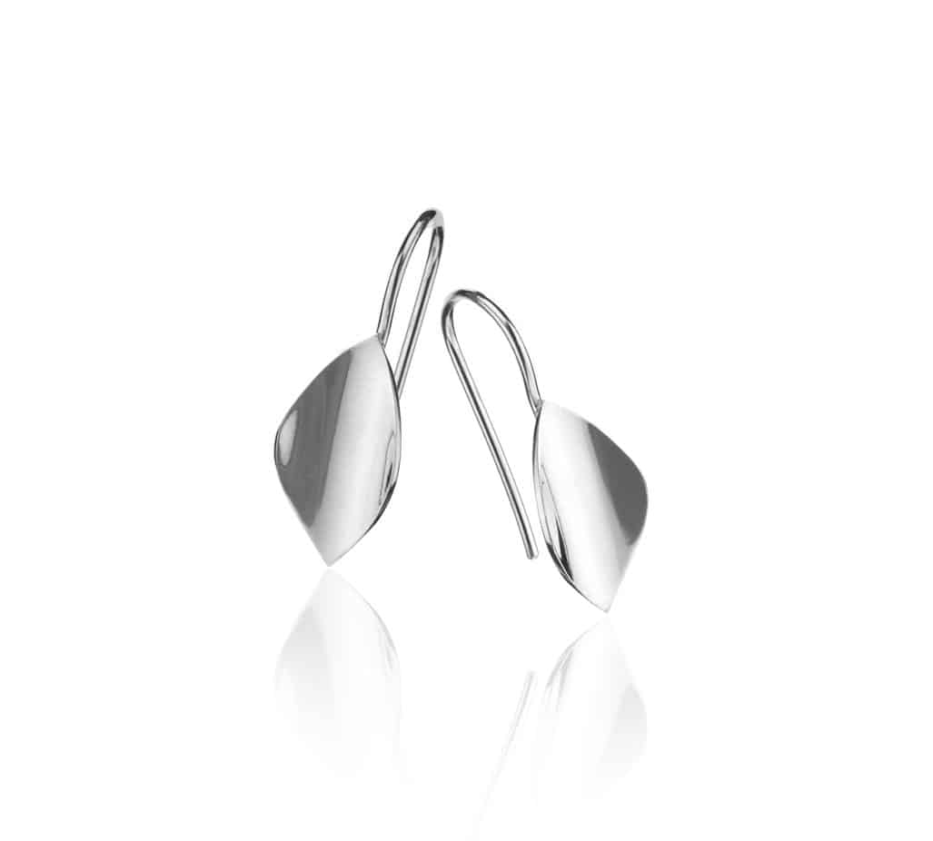 Bakka – Mini Blad hengende øredobber, blank sølv