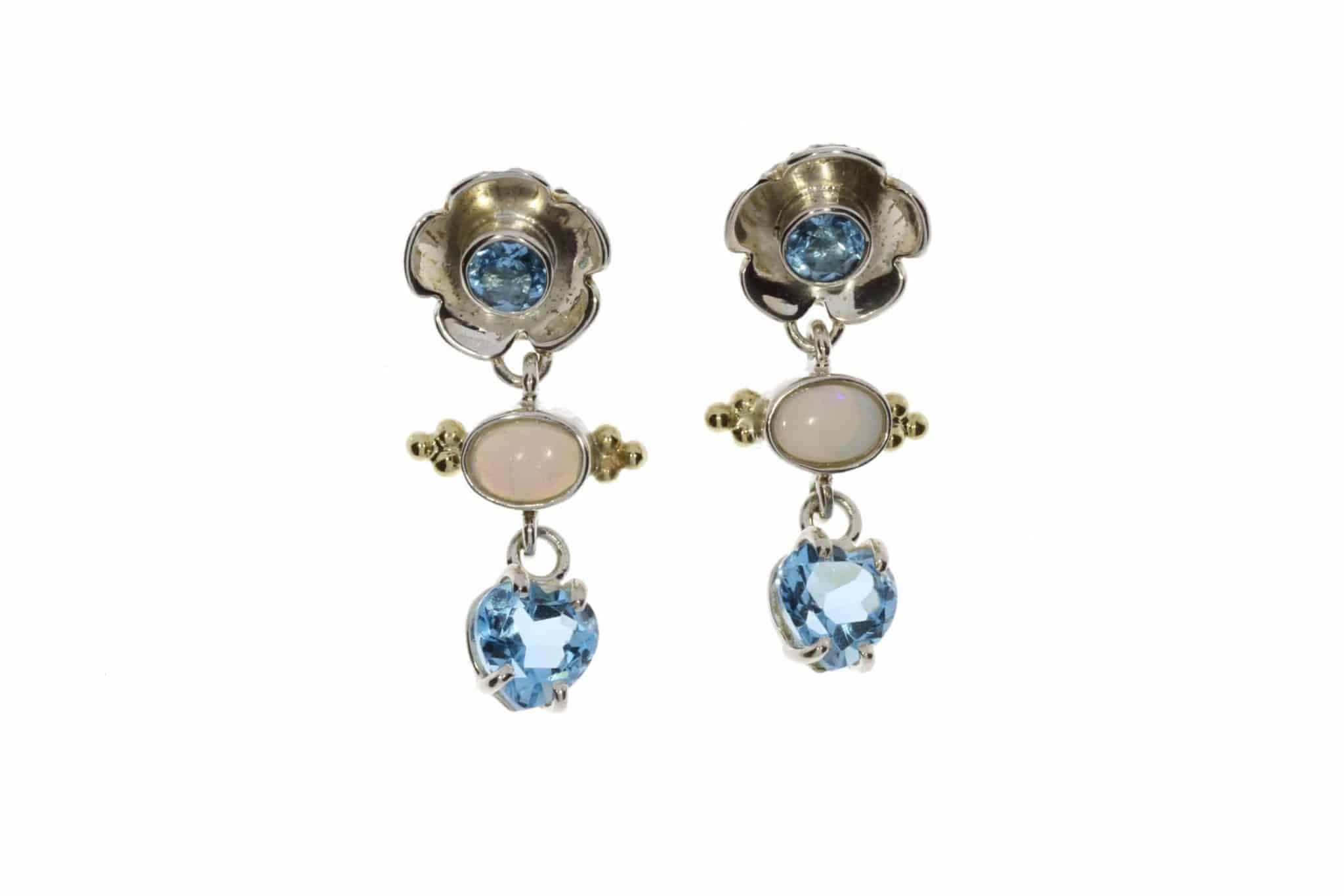 Rikke Harsheim – Ørepynt i sølv – Blomst opal – Swiss Blue Topaz