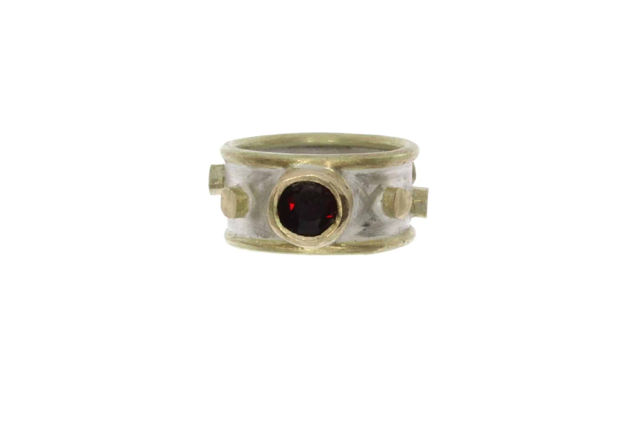 Rikke Harsheim – Bred ring med gullknotter og rund sten
