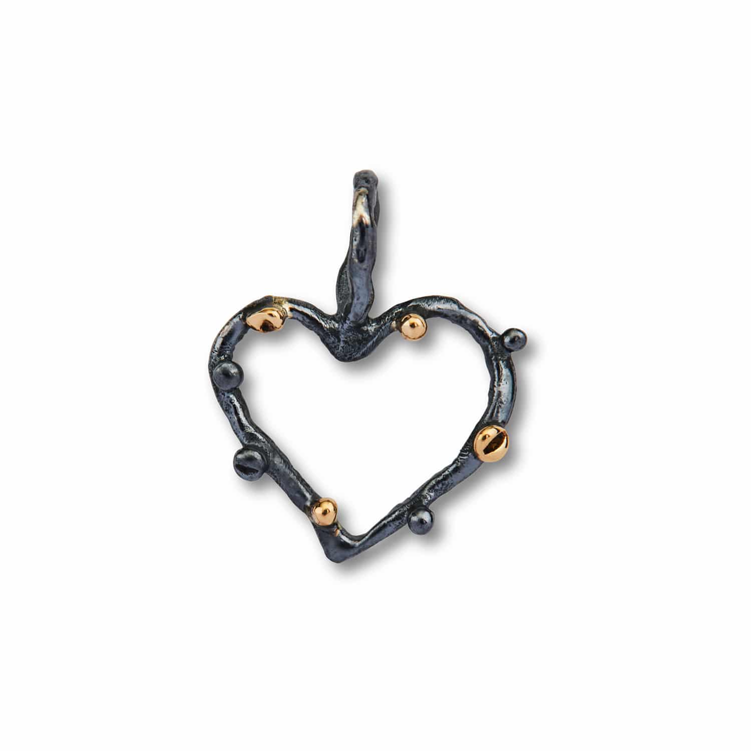 Håndlaget anheng i 925 sølv og 14 kt. gull. Gull og sølv kuler.