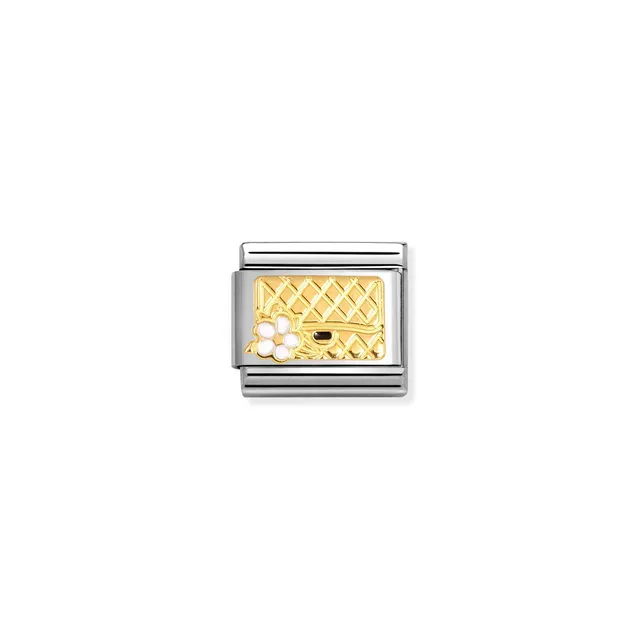 Stainless steel and bonded yellow gold Link with bag symbol and white flower