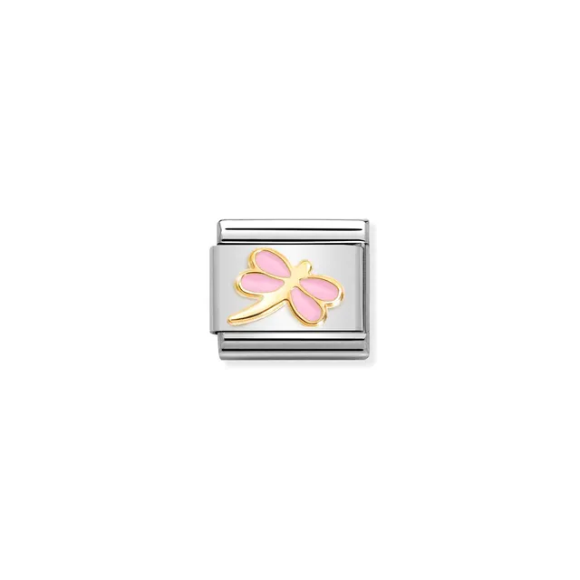 Charm, Composable Link, gold with Pink Dragonfly