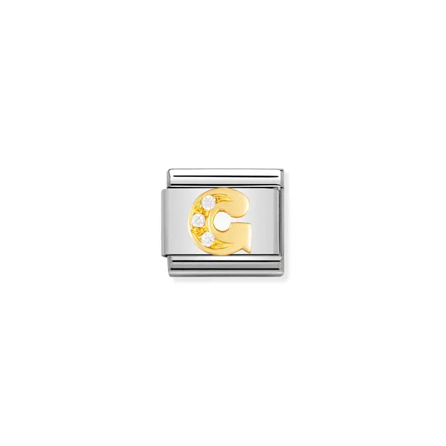 Alphabet Link in bonded yellow gold and Cubic Zirconia