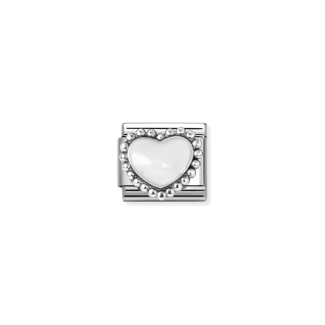 Bli den første til å omtale “Charm, Composable Link, White Heart, beaded setting”