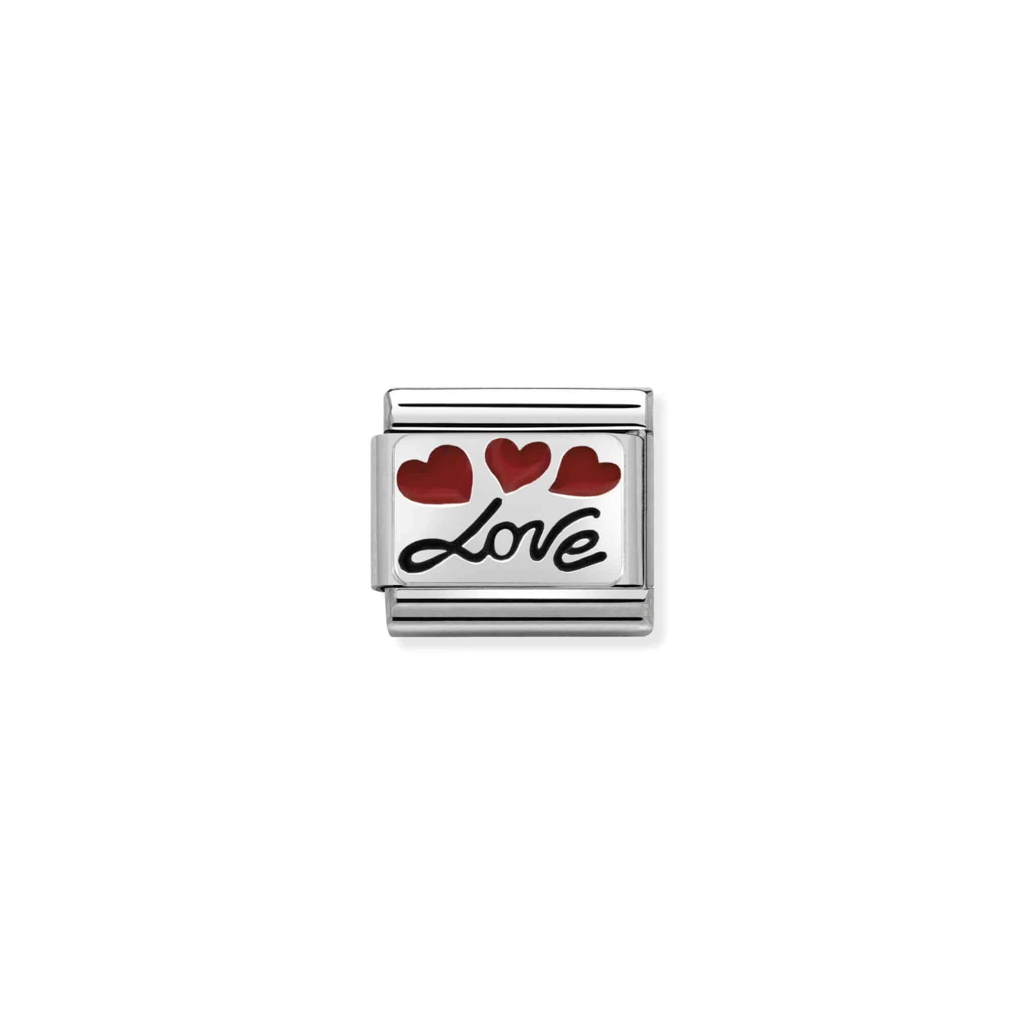 Composable CL OXIDIZED PLATES in steel, enamel and 925 sterling silver Love in italics and balloons