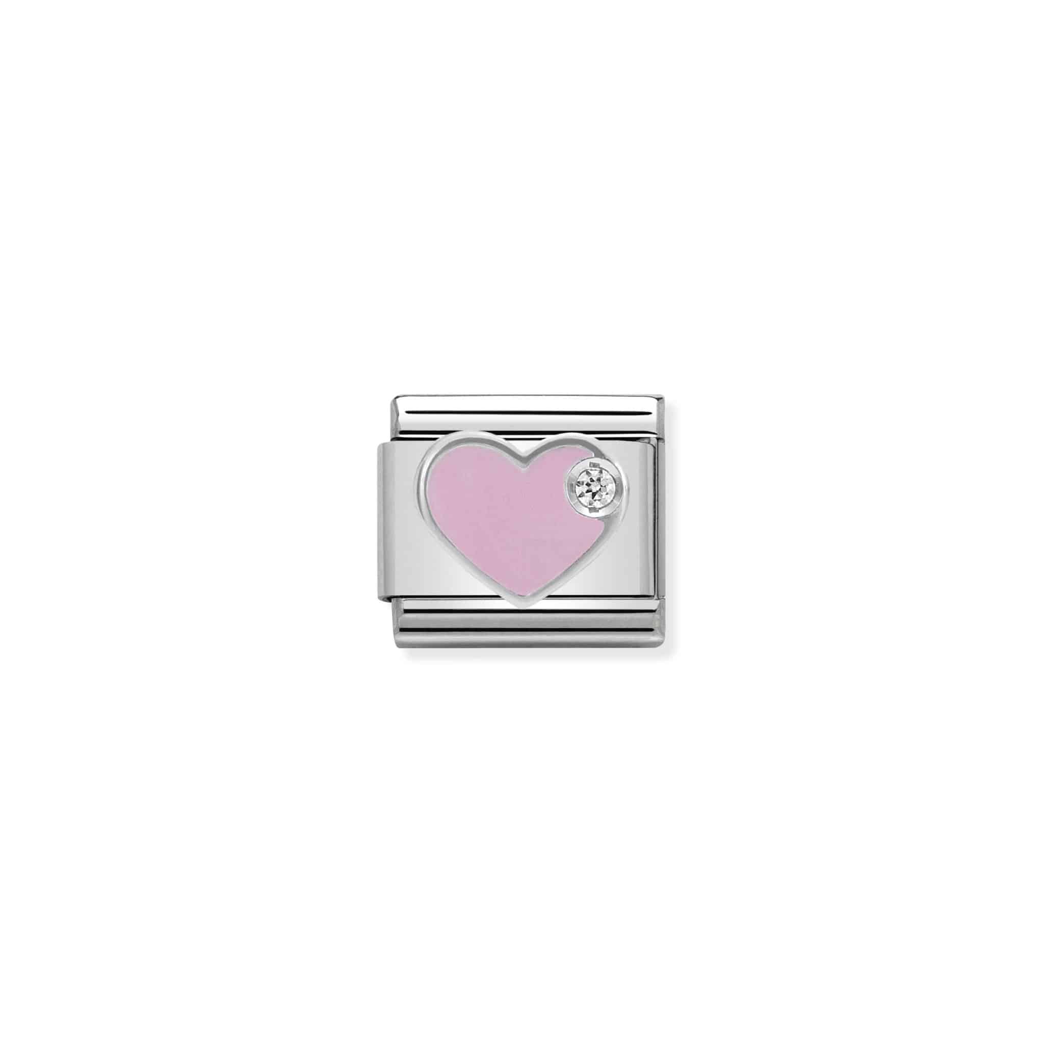 Composable CL SIMBOLS stainless steel, enamel, 1 Cub. Zirc and 925 sterling silver PINK heart
