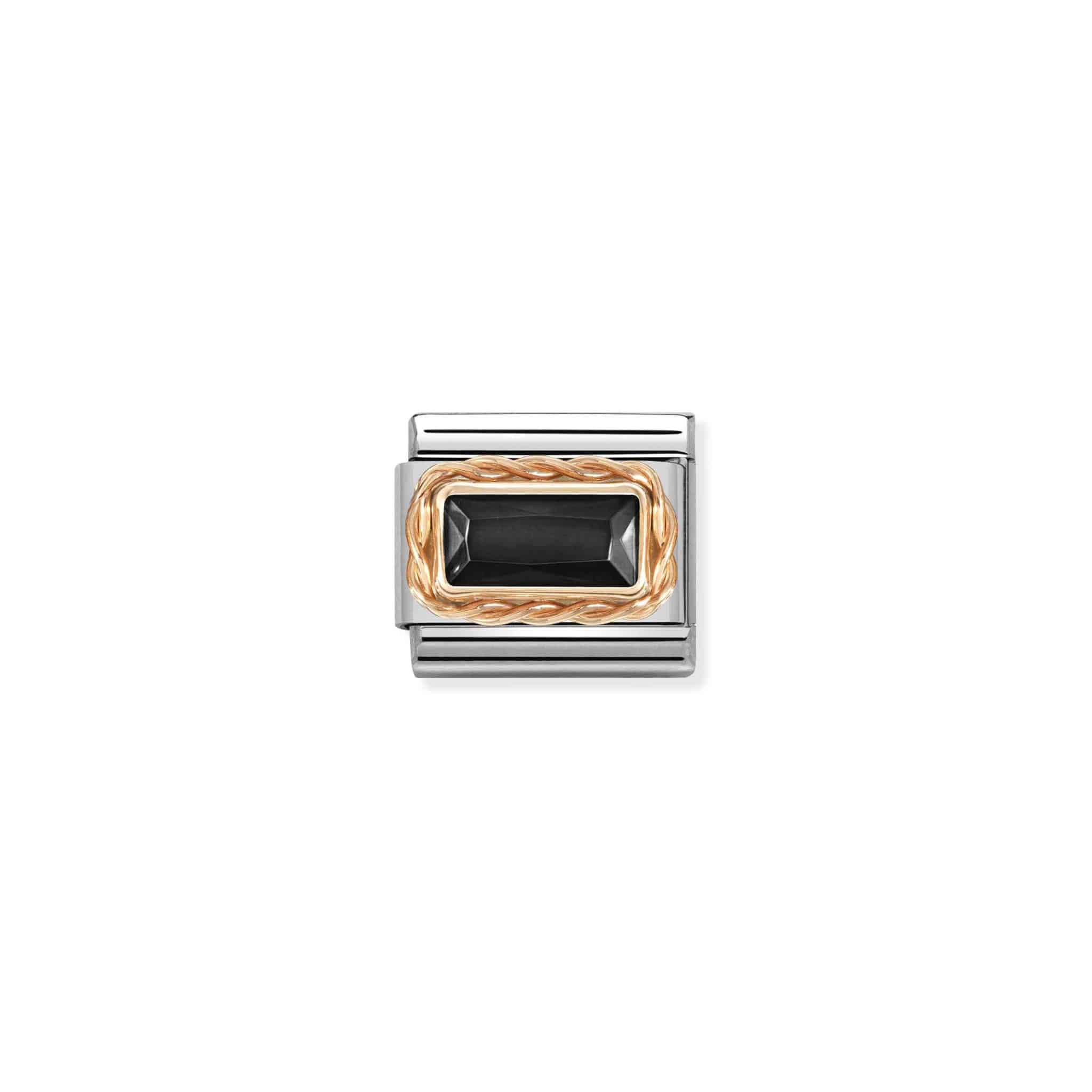 Composable Classic FACETED BAGUETTE WITH RICH SETTING in steel and 9k gold Black