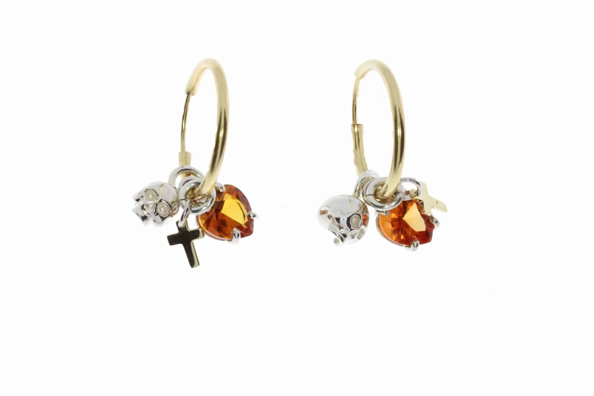 Rikke Harsheim – Gull øreringer med dødningshode – Orange