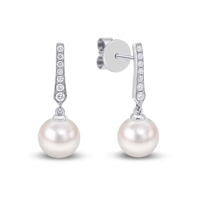 18 K hvitt gull ørepynt med 8,5x9mm Akoya perler og 0,17ct TW/VS diamanter.