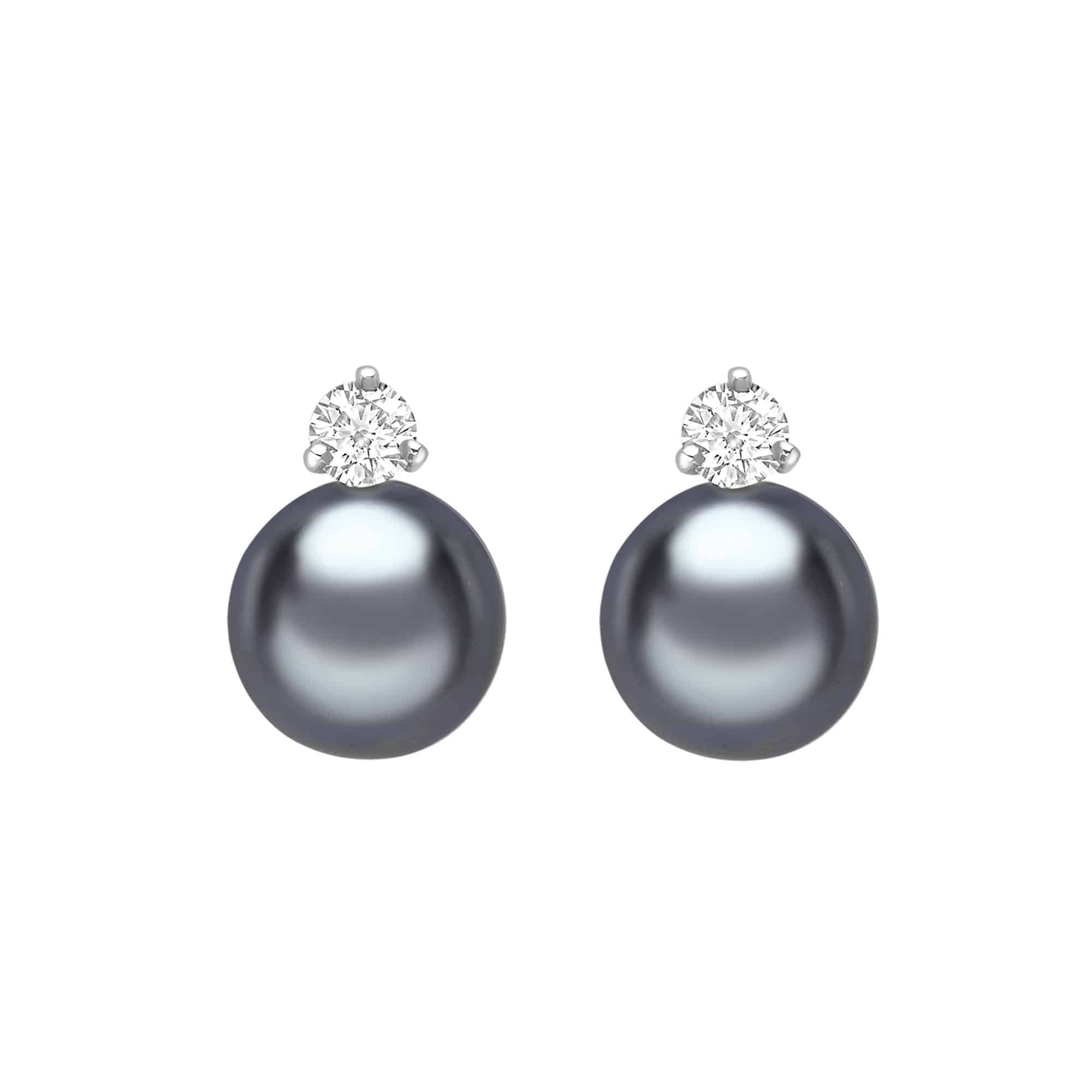 18K hvitt gull ørepynt med 2stk 8,5-9,0 mm Tahiti perler og 2stk diamanter 0,10ct TW/VS