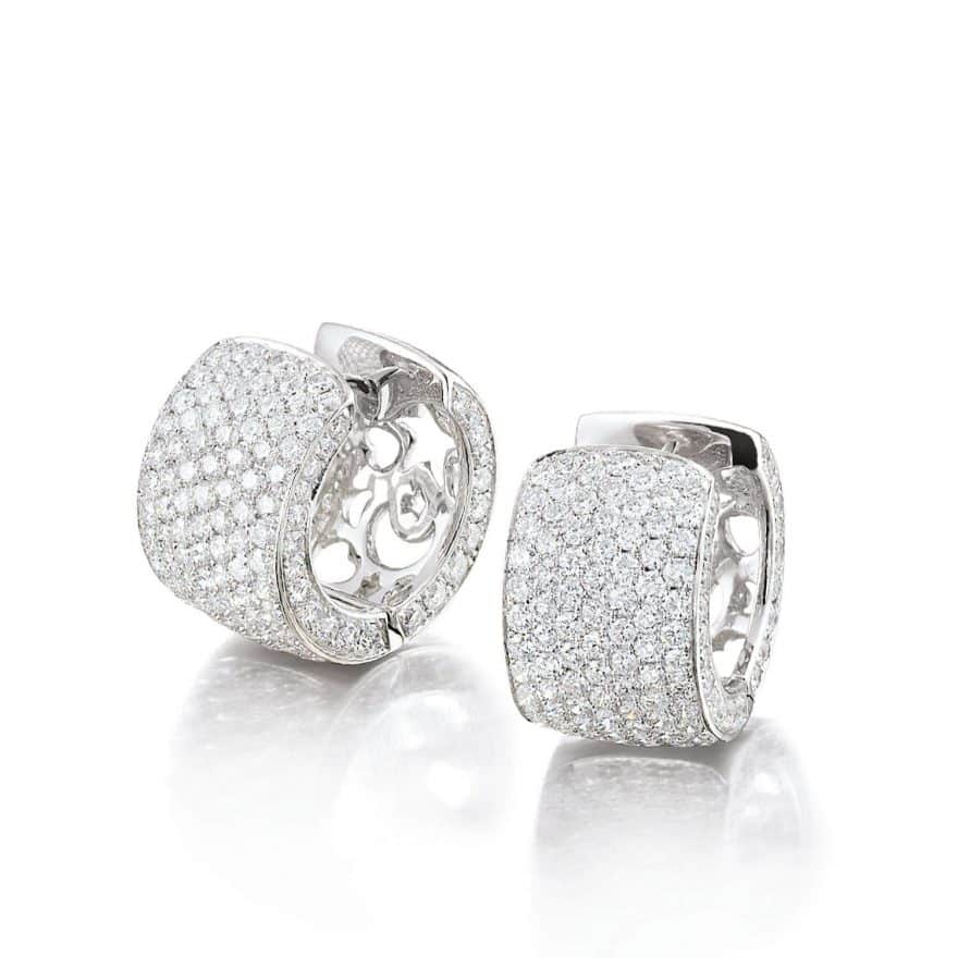 Store creoler i 18K hvitt gull. Mezzaluna- serien fra Al Coro. 262 brilliantslipte diamanter i totalt 3,23ct W/SI