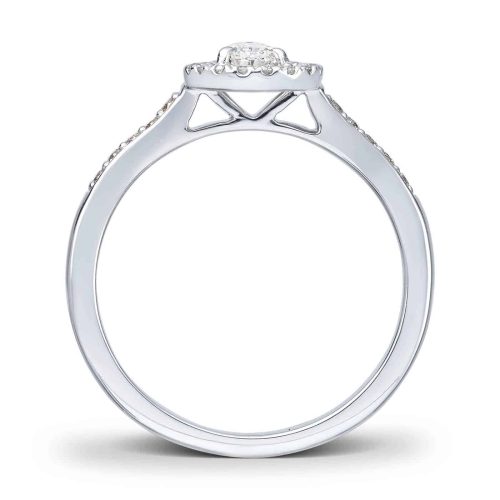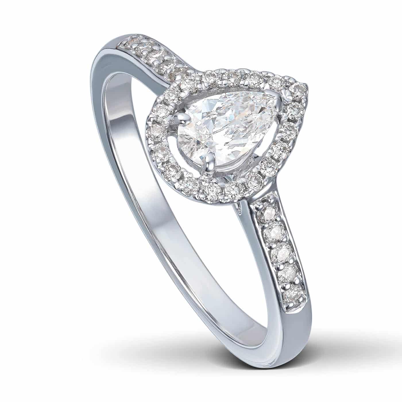 Hvitt gull ring med dråpeslipt diamant og brillianter