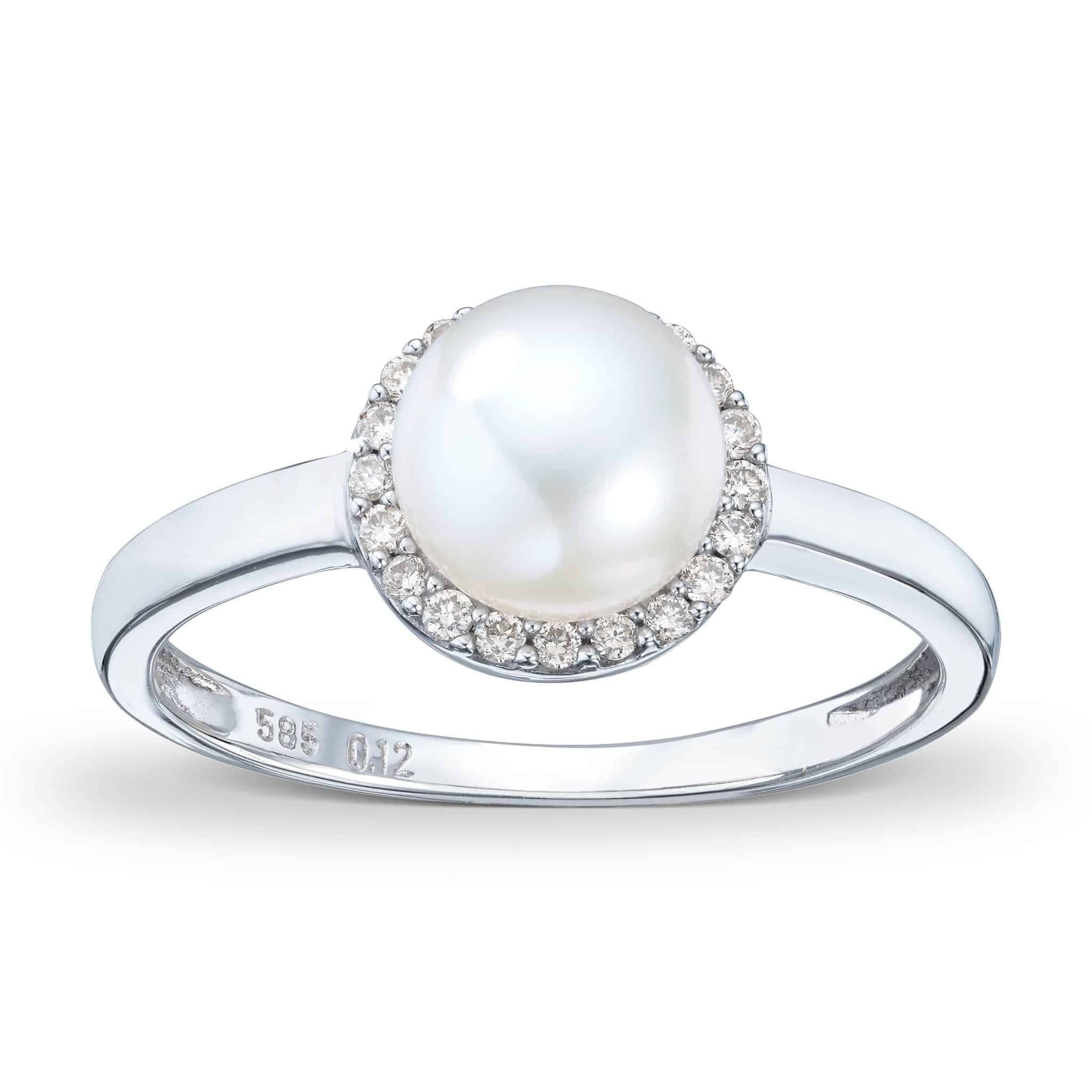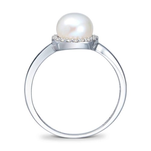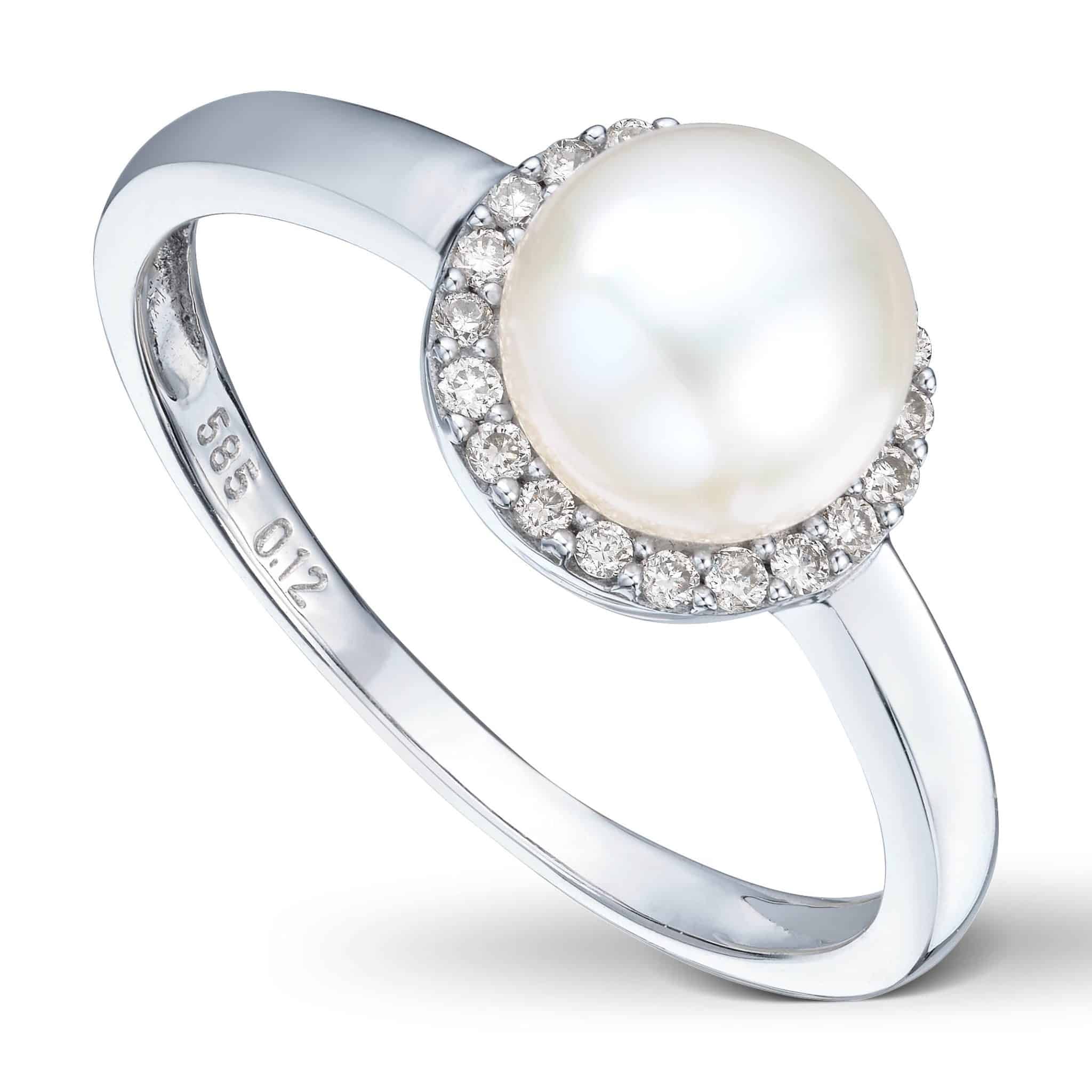 Hvitt gull ring med Ferskvannsperle og diamanter