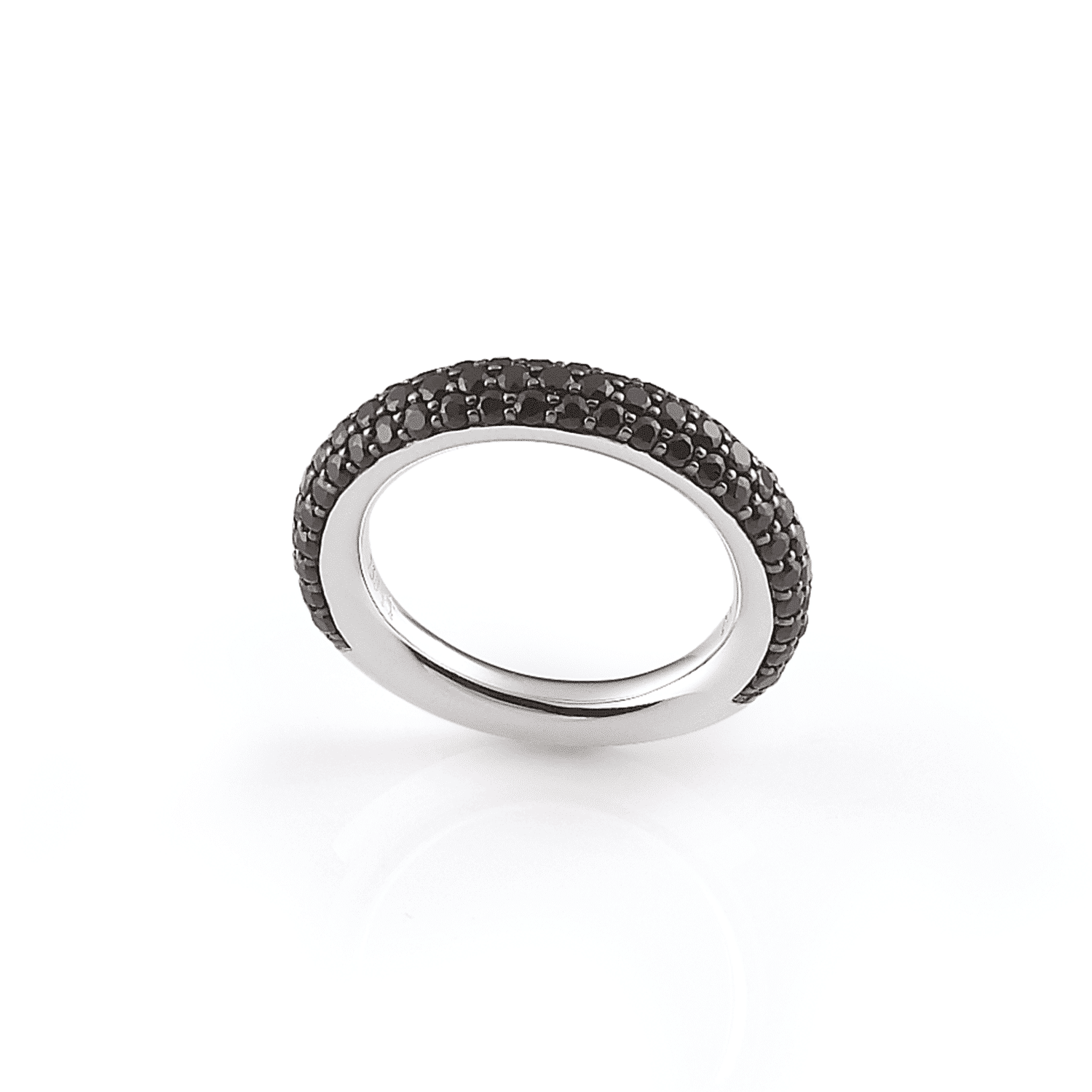 Elegant hvitt gull ring fra Al Coro. Ringen er med 79 sorte safirer tils. 2.62 ct.