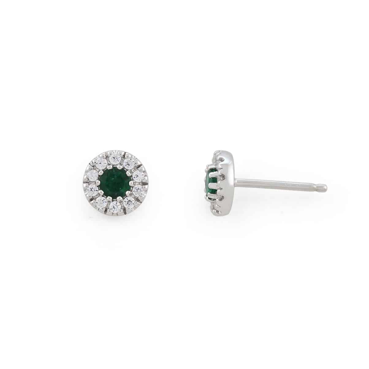 Hvitt gull rosett ørepynt med smaragd 0.44 ct og 20stk brilliantslipte diamanter til sammen 0.26 ct TW-Si