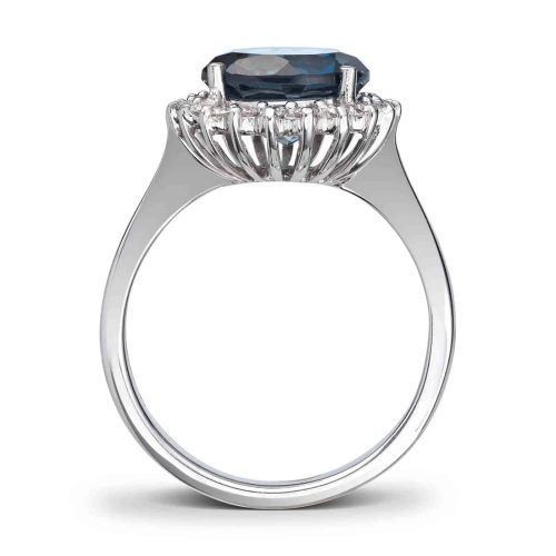 Hvitt gull rosett ring med London blue Topas og diamanter