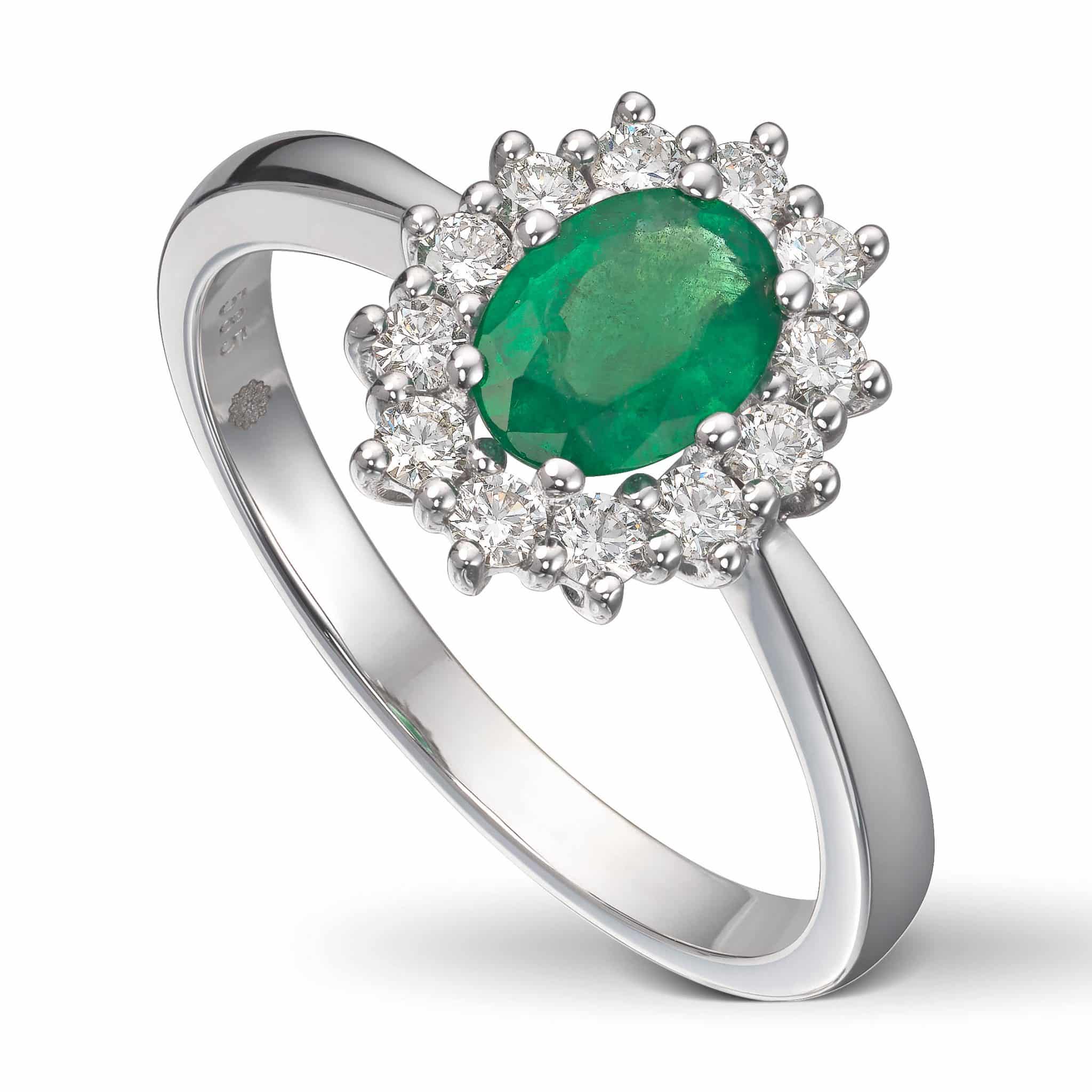 Hvitt gull rosett ring med Smaragd og diamanter 0,24ct