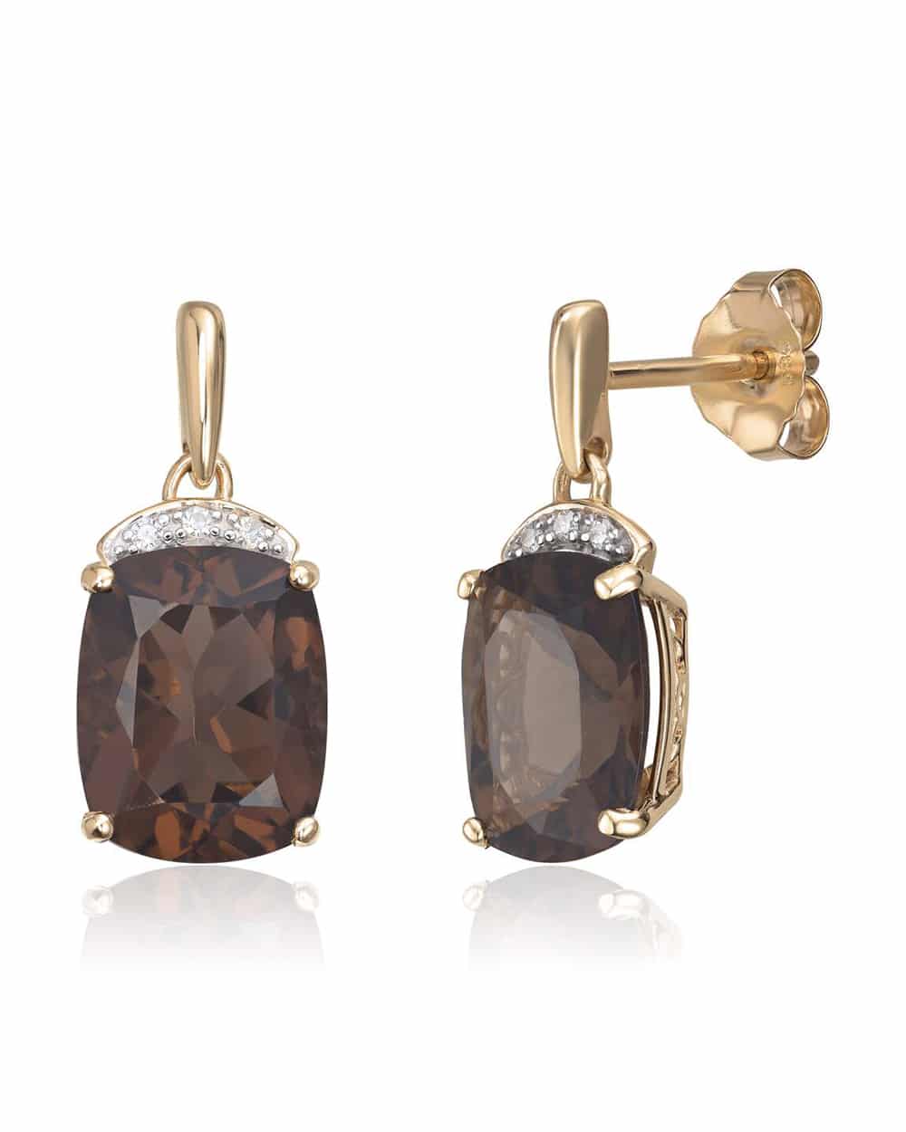 Ørepynt i 14K gult gull med røkkvarts og 0,03ct WSI diamanter