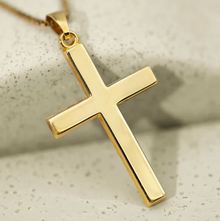 Pan Jewelry, Kors i 585 gult gull Flott kors i 585 gult gull. Korset har en høyde på 35,5 mm og bredde 19 mm. Korset kan ikke graveres.