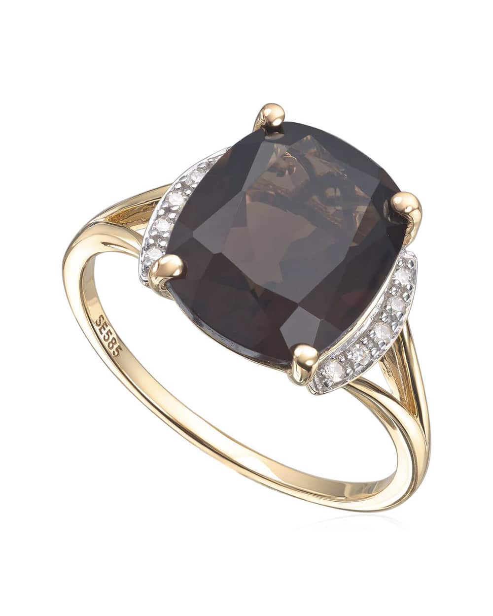 Ring i 14K gult gull med 0,05ct WSI og Røkkvarts