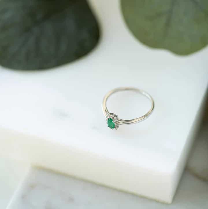 Ring i hvitt gull med diamant og smaragd 0,04 ct WSI