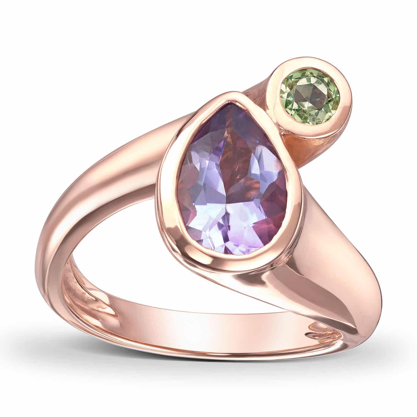 Rosè gull ring “one of a kind” med ametyst og turmalin