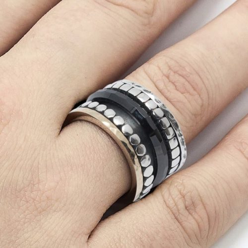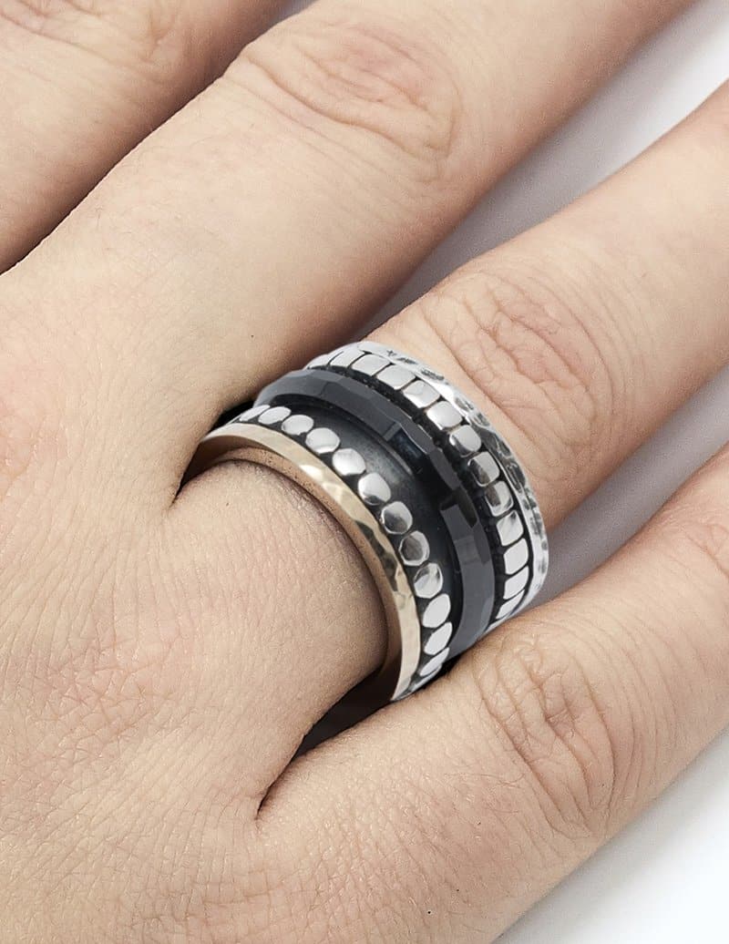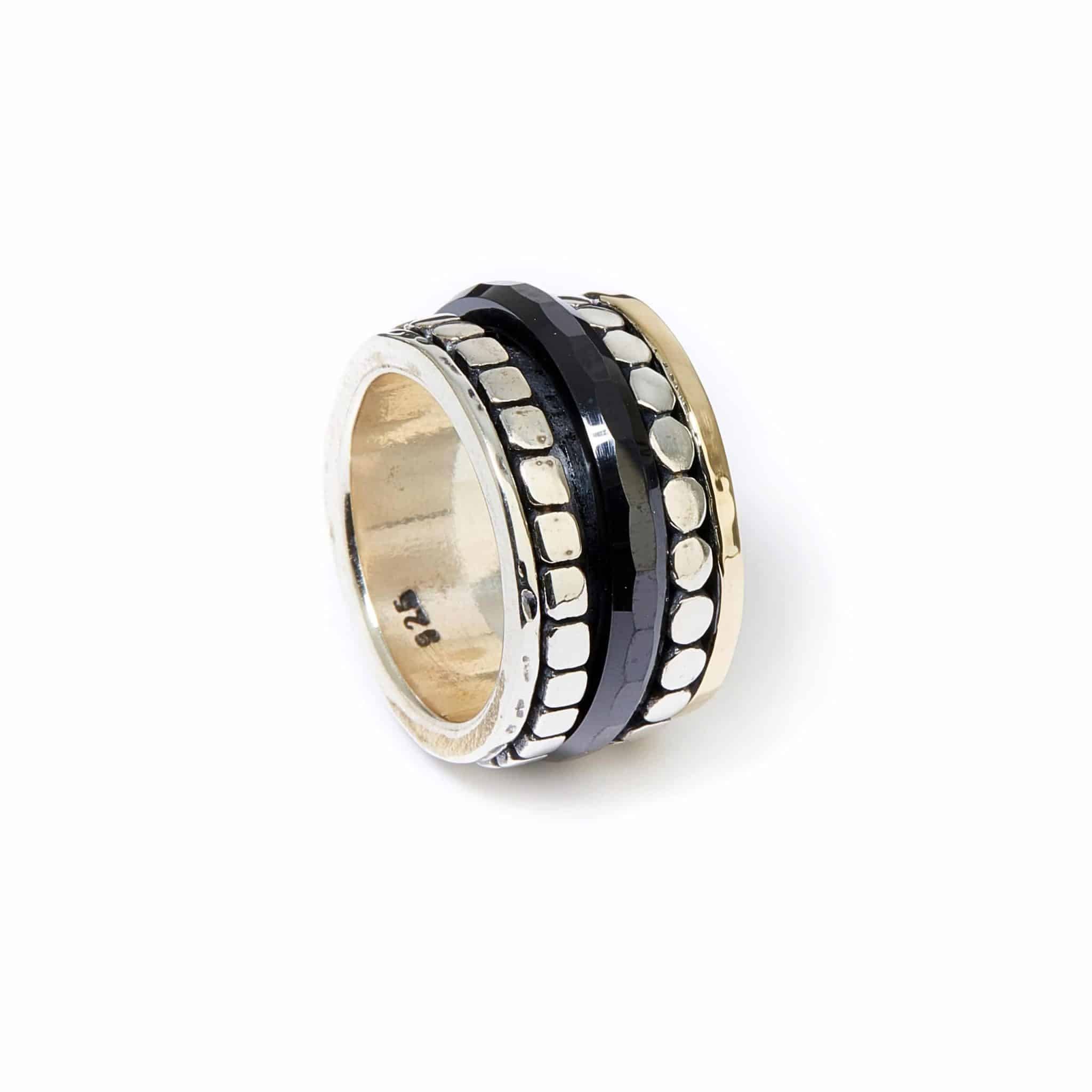 Bred sølv ring i 925 sølv og 9 kt. gult gull med sort keramikk.