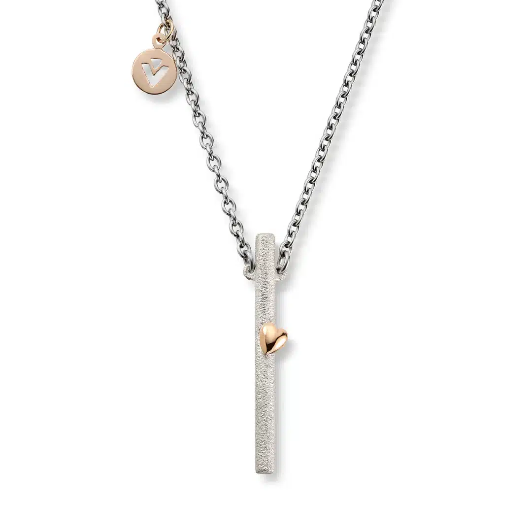 Van Bergen – Silver Heart Anheng i sølv og gult gull med stål kjede
